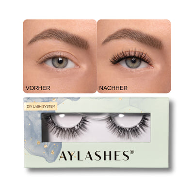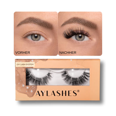 Mit AYLASHES zauberst du dir einen professionellen Wimpernstudiolook ganz einfach selbst – bequem von zu Hause und in nur wenigen Minuten. Dank der unkomplizierten Anwendung gelingt dir der perfekte Style ohne Angst vor Fehlern!
